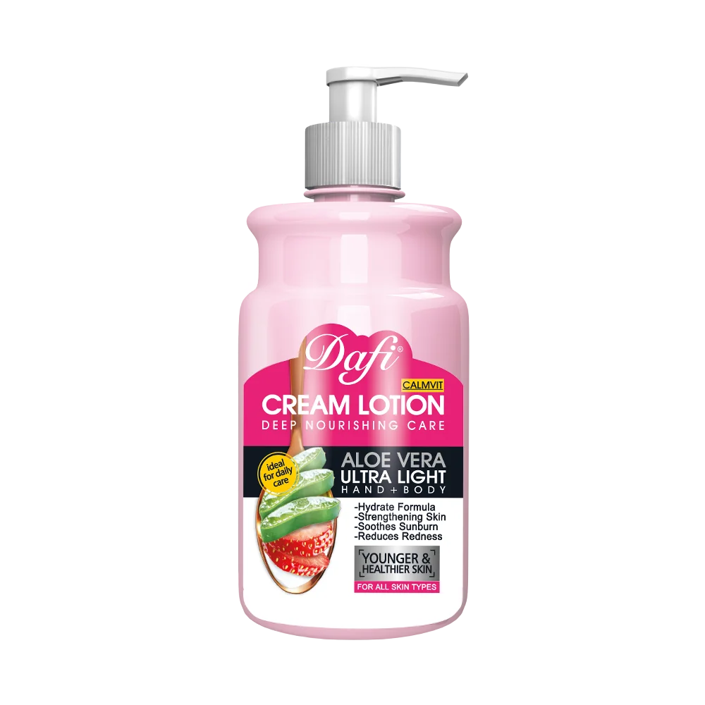 لوسیون بدن آلوئه ورا دافی، یک محصول ایده‌آل برای استفاده روزانه جهت مراقبت از پوست بدن، دست و صورت است. این محصول با داشتن فرمولاسیونی پیشرفته مانع ایجاد خشکی، حساسیت و مشکلات پوستی شده و همچنین پوستی نرم، شاداب و شفاف را برای شما به ارمغان می‌آورد. این لوسیون با ترکیبات طبیعی و مغذی، انتخابی مناسب برای انواع پوست می باشد.